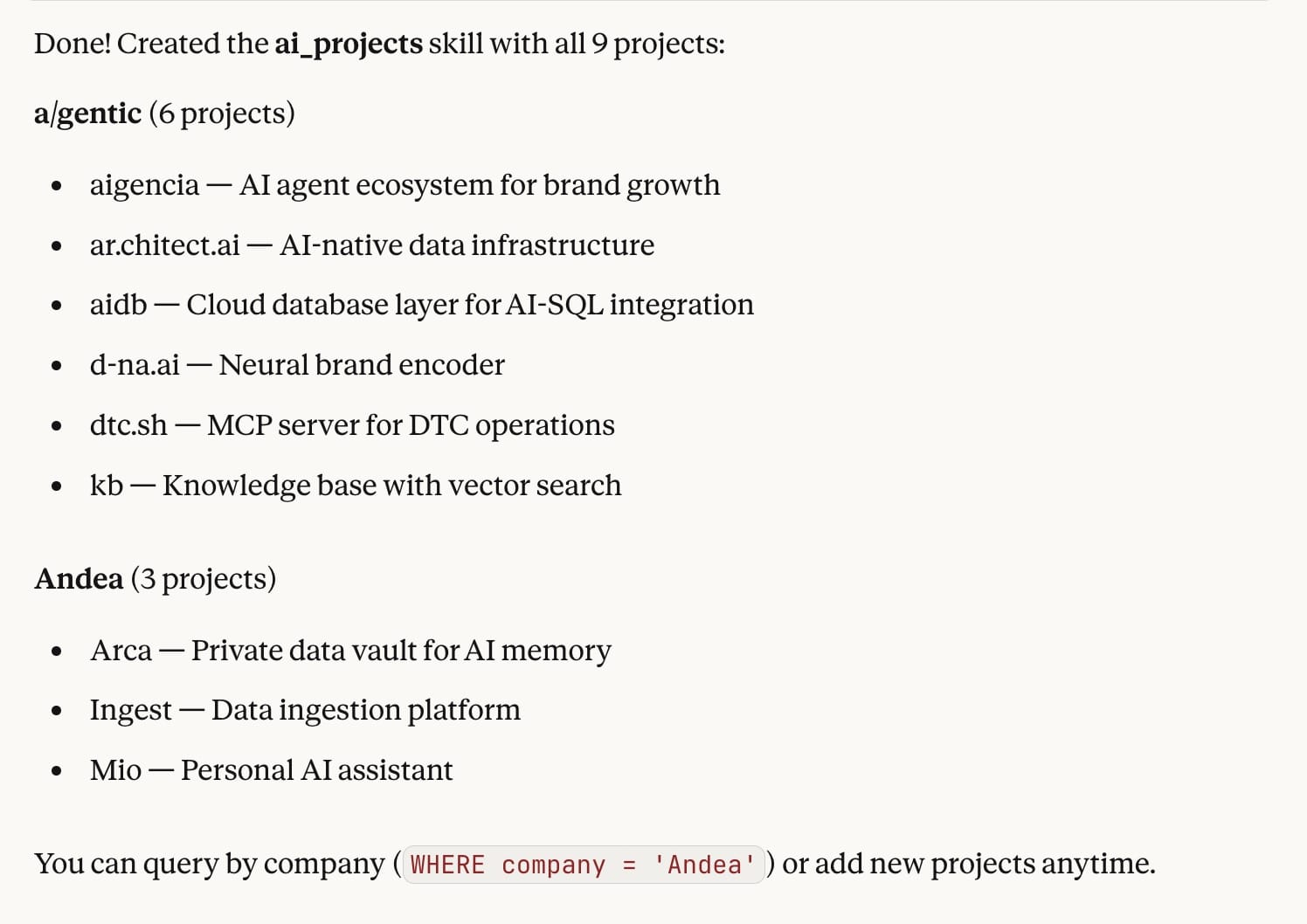 See that Claude Code example below that is super relevant to me. Arca uses vector memory for text-heavy data using LanceDB and parquet files for structured data using DuckDB. Both stored as data files in AWS S3.