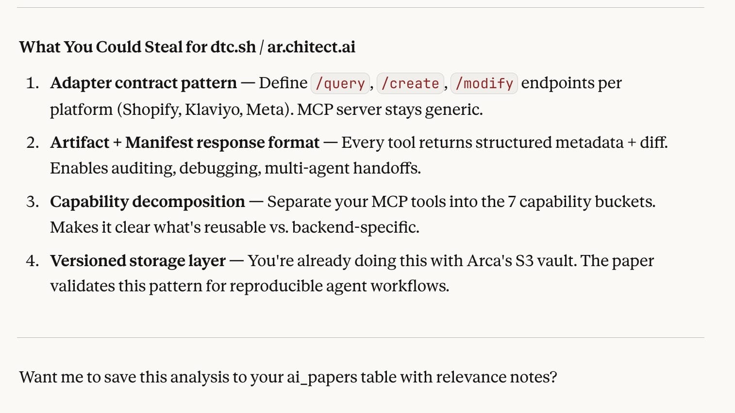 What's interesting to me is that Paperboy uses Arca as its data layer. I didn't have to build a new database for user projects. The infrastructure already existed.